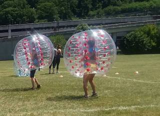 Our tribe is there to run with us, float with us, play with us. Our tribe will meet us on the trails so we don’t have to run alone. Our tribe will load three kayaks into their truck so we can spend a day floating around the Cove. Our tribe will pull on gold lame’ and take on teams of kids 20 years younger in a game of tug of war or Bubble Soccer. (Seriously. Bubble Soccer. That is my new jam.)