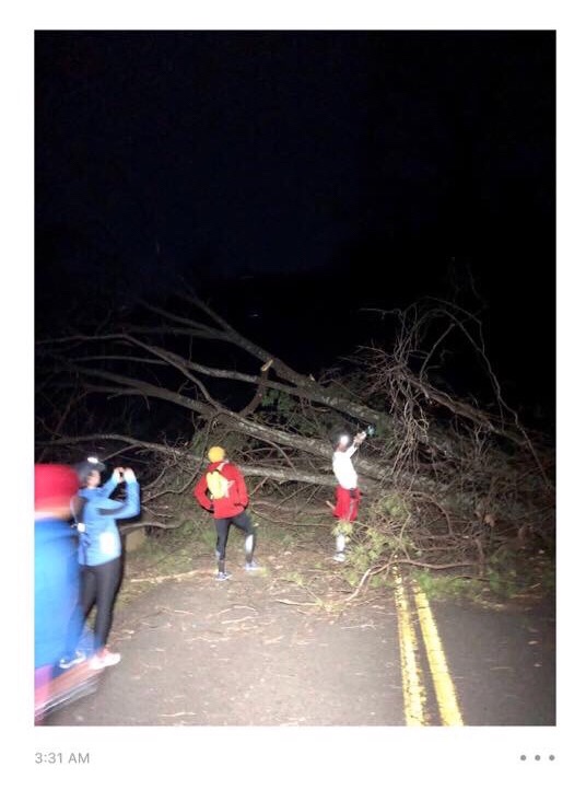 But with my psychopaths, we owned that tree. All we needed was for Danny (also known as dude in previous posts) to climb up on top of it and say the road was clear ahead. (Which was ridiculous because one, he couldn’t see but 50 yards ahead so he really didn’t know and two, I’m pretty sure we would have kept going even if he’d seen 50 more trees down on the road.)