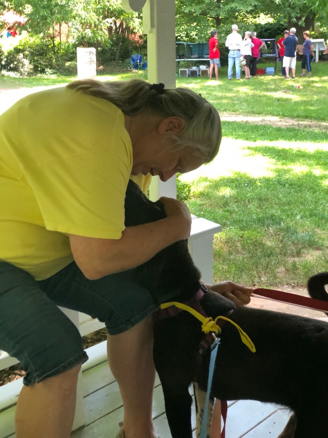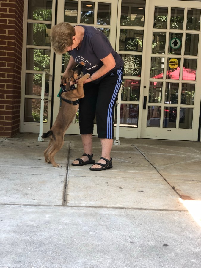 It’s spending several hours out in the heat of the day holding onto leashes with very strong, excited puppies on the ends of them, monitoring small children who want to scream and grab onto puppy, answering questions and engaging with the public, and picking poop up off the ground.