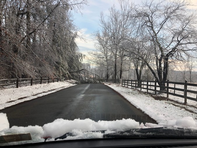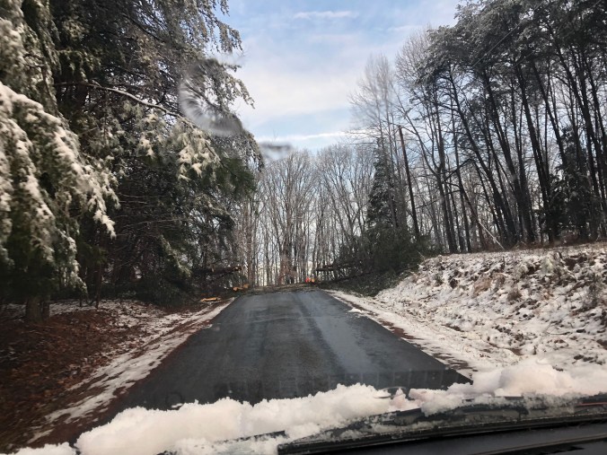 I turned around on my way out of my neighborhood because a tree was down on the road and the men were chainsawing it and one of them was waving me on up. I assume because he wanted me to social with them. And I can barely social when I’ve had all the coffee. There is no socialing when I haven’t had any of the coffee.