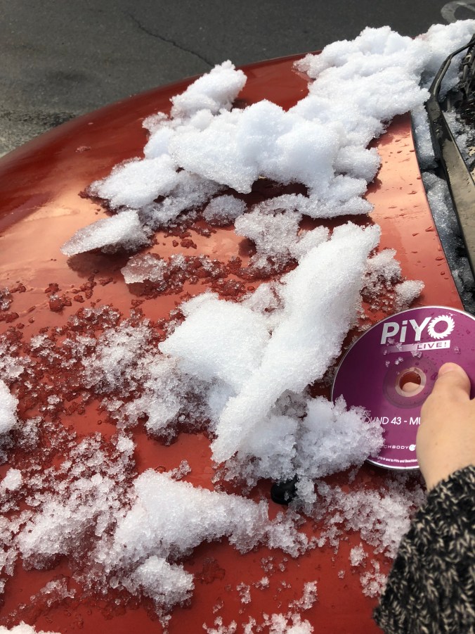 I left the ice on the top of the car, because I’m short and I couldn’t Go Go Gadget my arms to make the CD reach the top of my car.