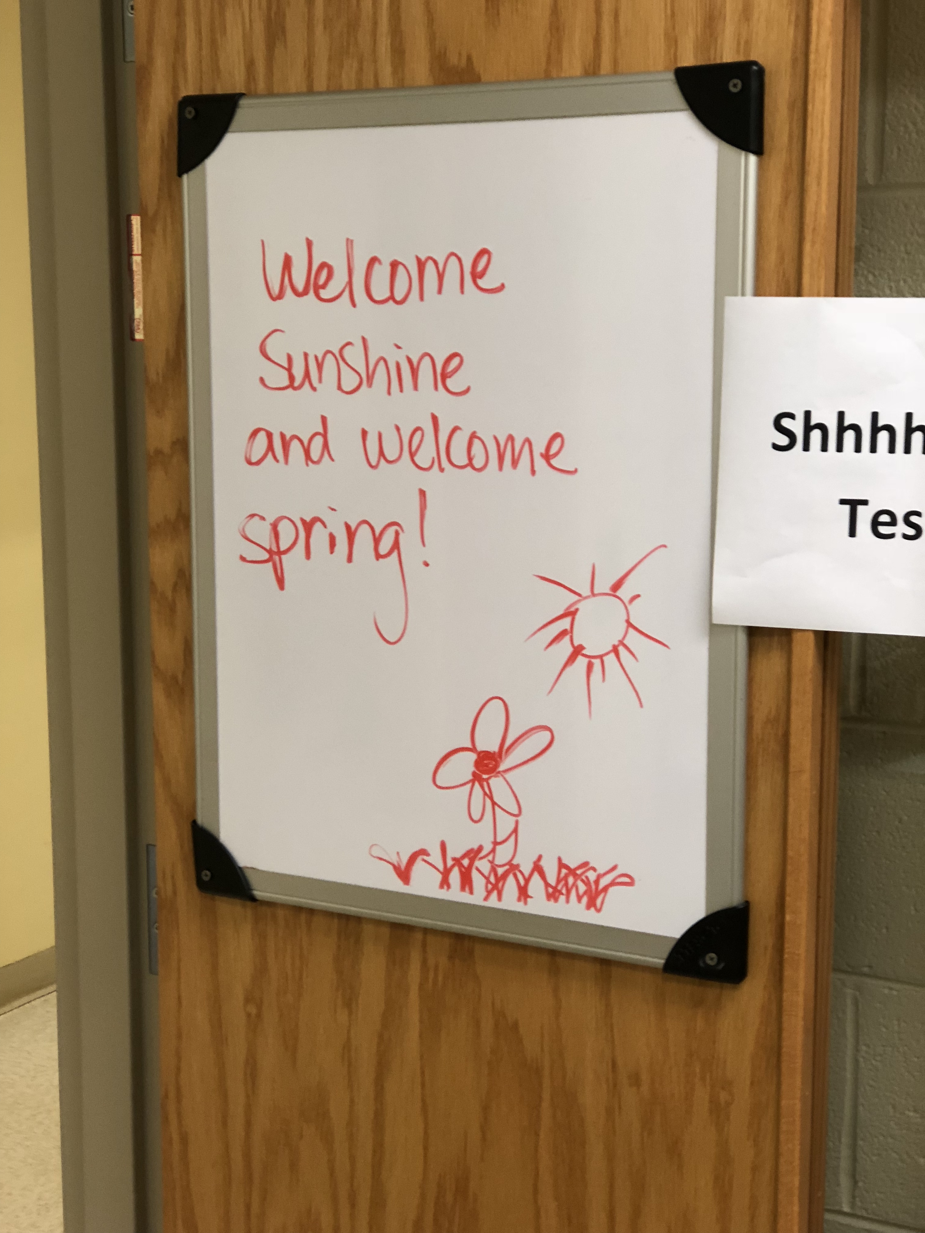 But the message my awesome co-worker wrote on my office door means it’s spring testing time. Spring testing time means the rest of the world ceases to exist.