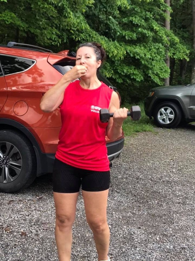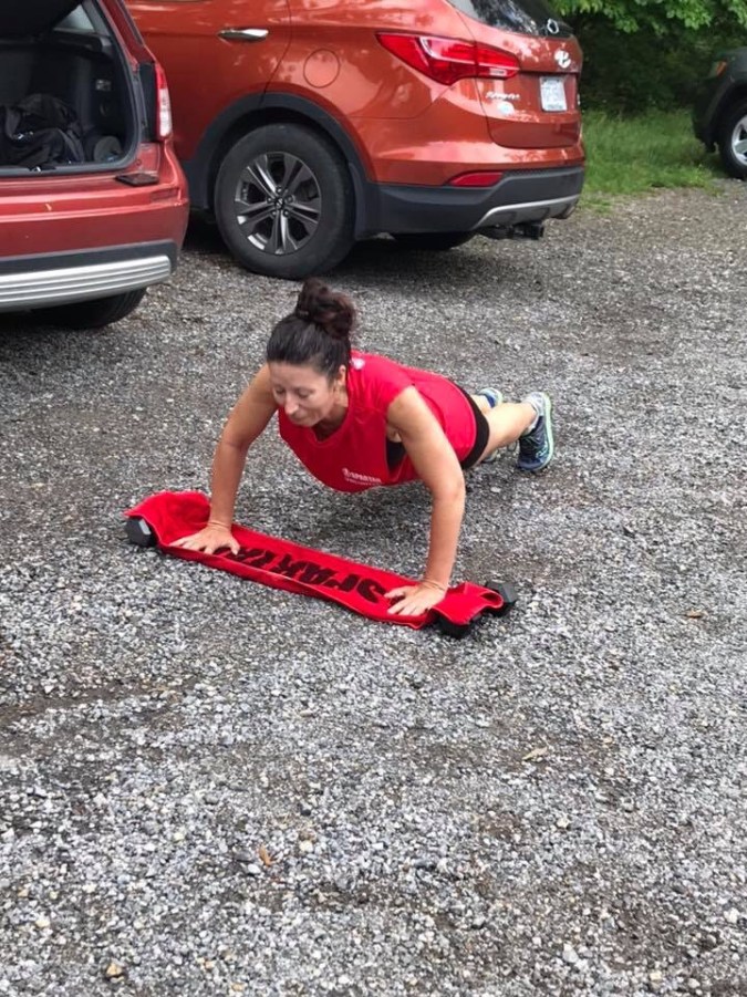 We got some of our squats and push ups and burpees (because of course you have to throw in some burpees) in on the trail during our first loop.