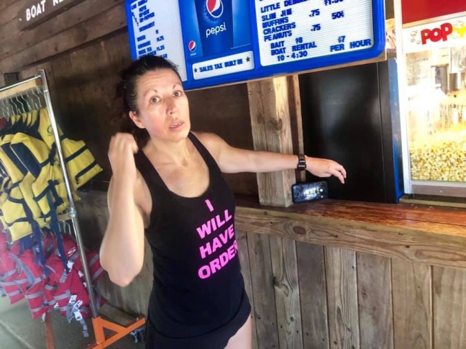 Refilled my water again. Dunked my feet in the lake. And watched a full on coup at the diving boards. Led by a WWI and II vet. Followed by every single child on the beach. Who all successfully took control of the diving board dock. In the face of a powerless life guard. On a paddle board. Calling out to him, “Sir! Please stop!”