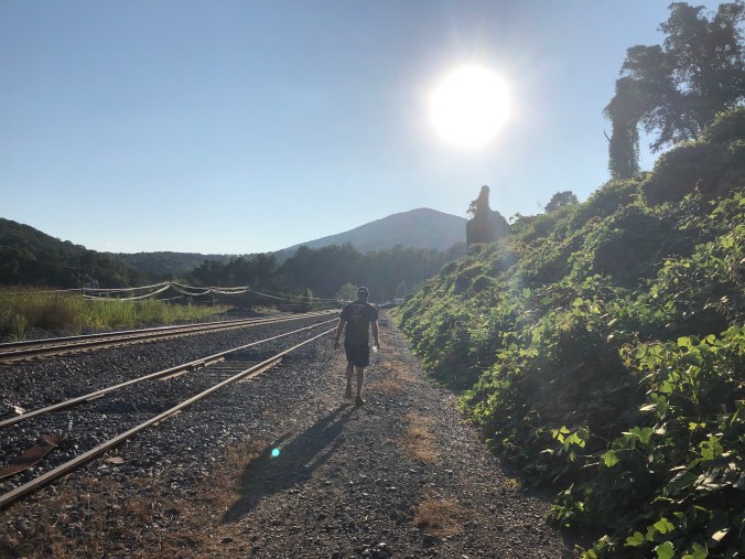 There’s a stretch of what may have once been a road-like area along some train tracks before you get to the trail.