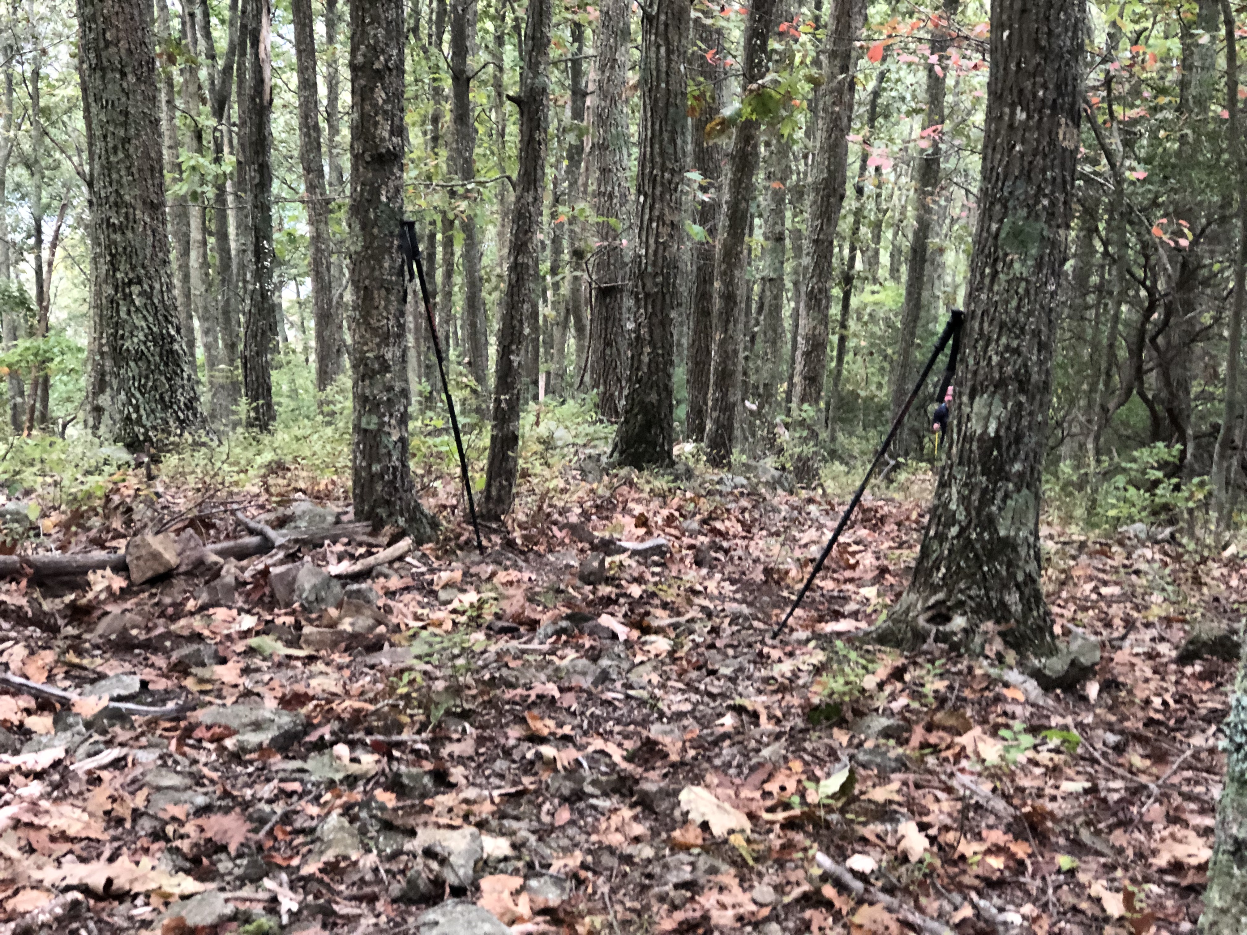 So I was completely alone when I came up on GJB’s poles. That the bees had thoughtfully gathered up and leaned against two trees for him. After he’d thoughtlessly thrown them around the mountain last Christmas.