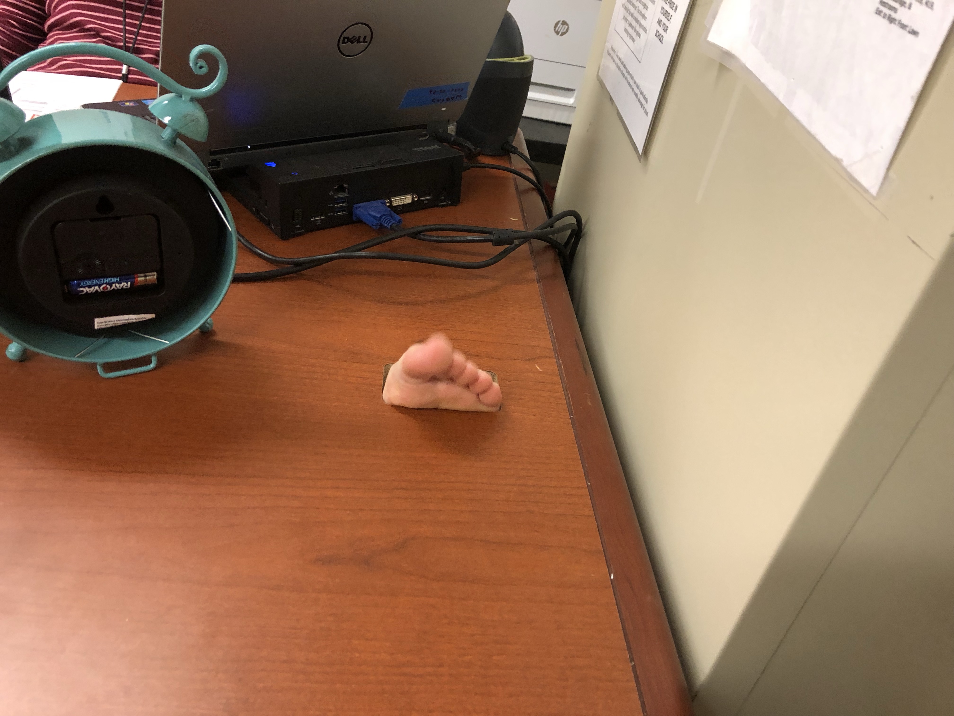 I’m not exactly sure what she thought was happening to her desk in that general area? Or what alternate plane her foot was existing in. But I guess maybe she doesn’t have a real strong grasp on the properties of physics.