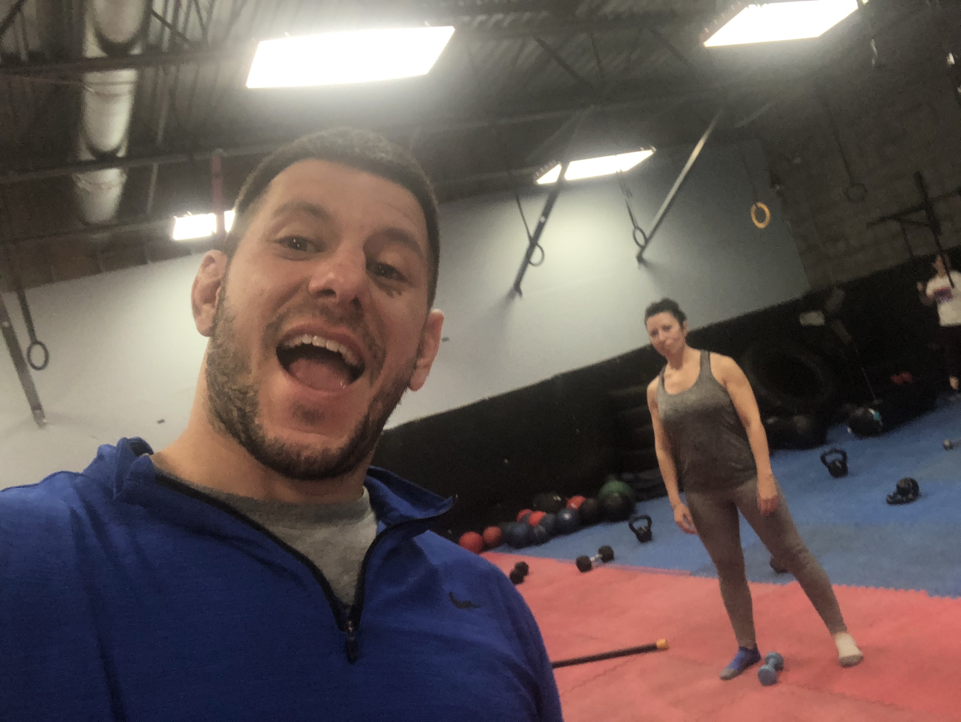And because I was only there for the socializing. And I like to annoy J-Vicious. And also Carlos and Co-Worker B were texting me. I wasn’t paying a whole lot of attention to J-V as he explained the workout.