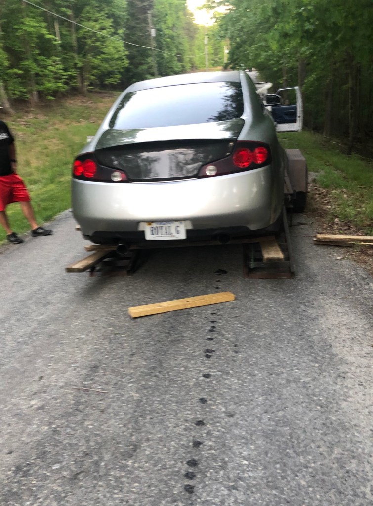 And then some dudes showed up. From West Virginia. With their girlfriends. And a trailer. Attached to a two-wheel drive truck. To get the engineless car that has lived at my house for the last two years.