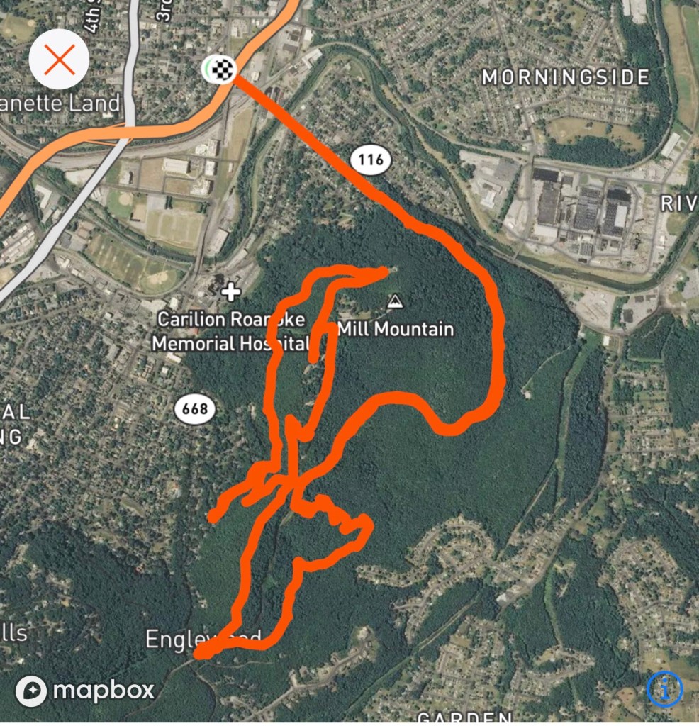 And for whatever reason. When she suggested we run the Mill Mountain Mayhem course. I really thought we were talking about Falling Creek Park. Where Trail Nut happens. And not Mill Mountain. Which is where Mill Mountain Mayhem happens.