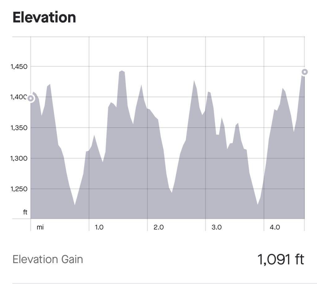 Over a 1,000 feet of climbing in 4 1/2 miles. And that climbing is straight the fuck up. And then straight the fuck back down.