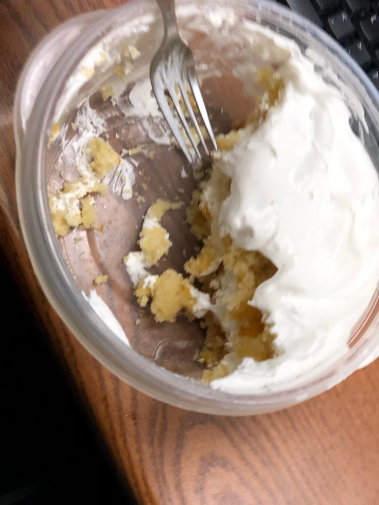 And on Monday, My Weird Left Pinky Toe brought me a huge container of this delicious peach dump cake trifle accident delight.