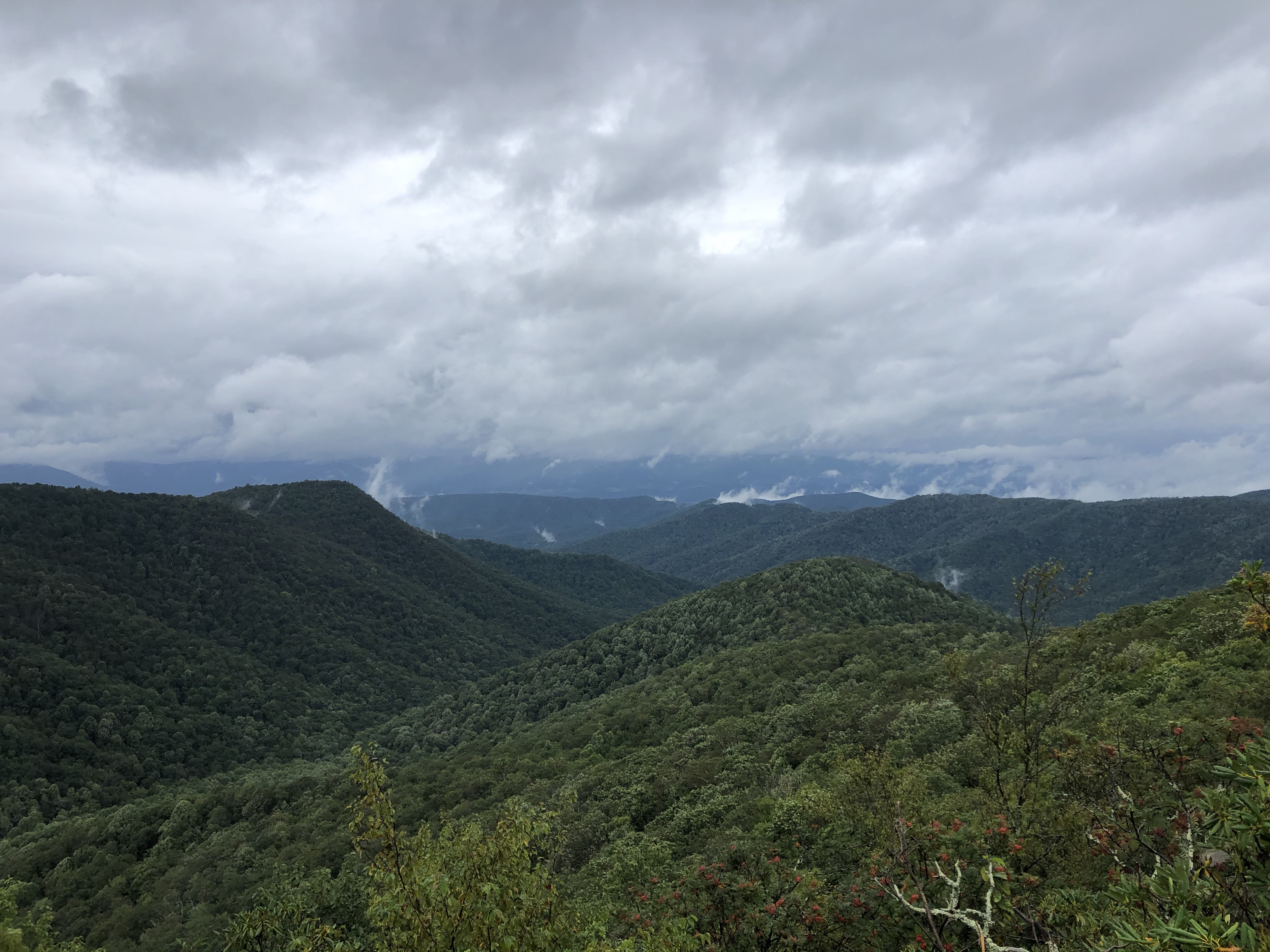 And there was this overlook. That we skipped on the way up. Because these mountains haven’t given us a damn view all summer. And we sure as hell didn’t expect a view during hurricane remnants.