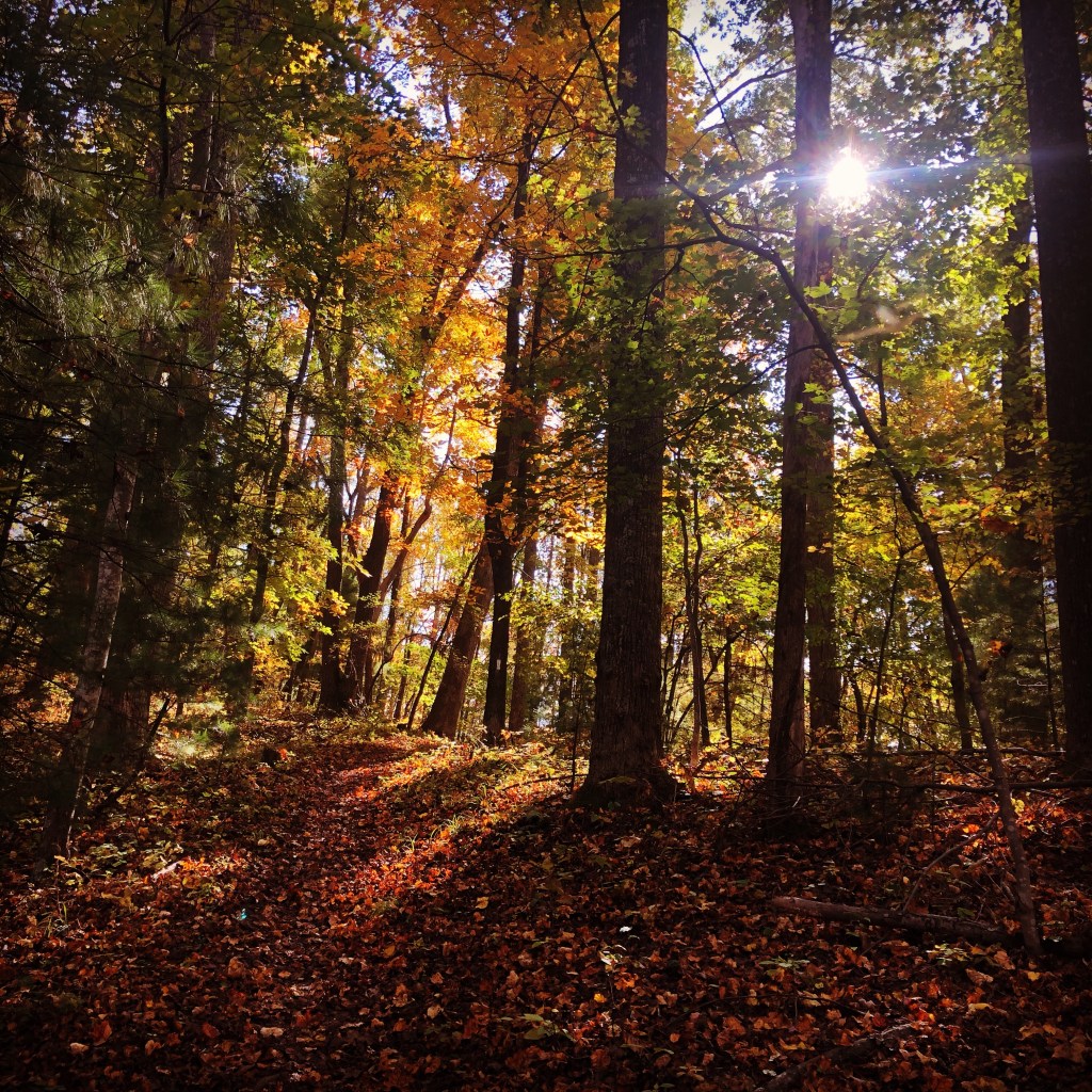 The only sounds were the squirrels and birds and leaves under my feet and my rather labored breathing.