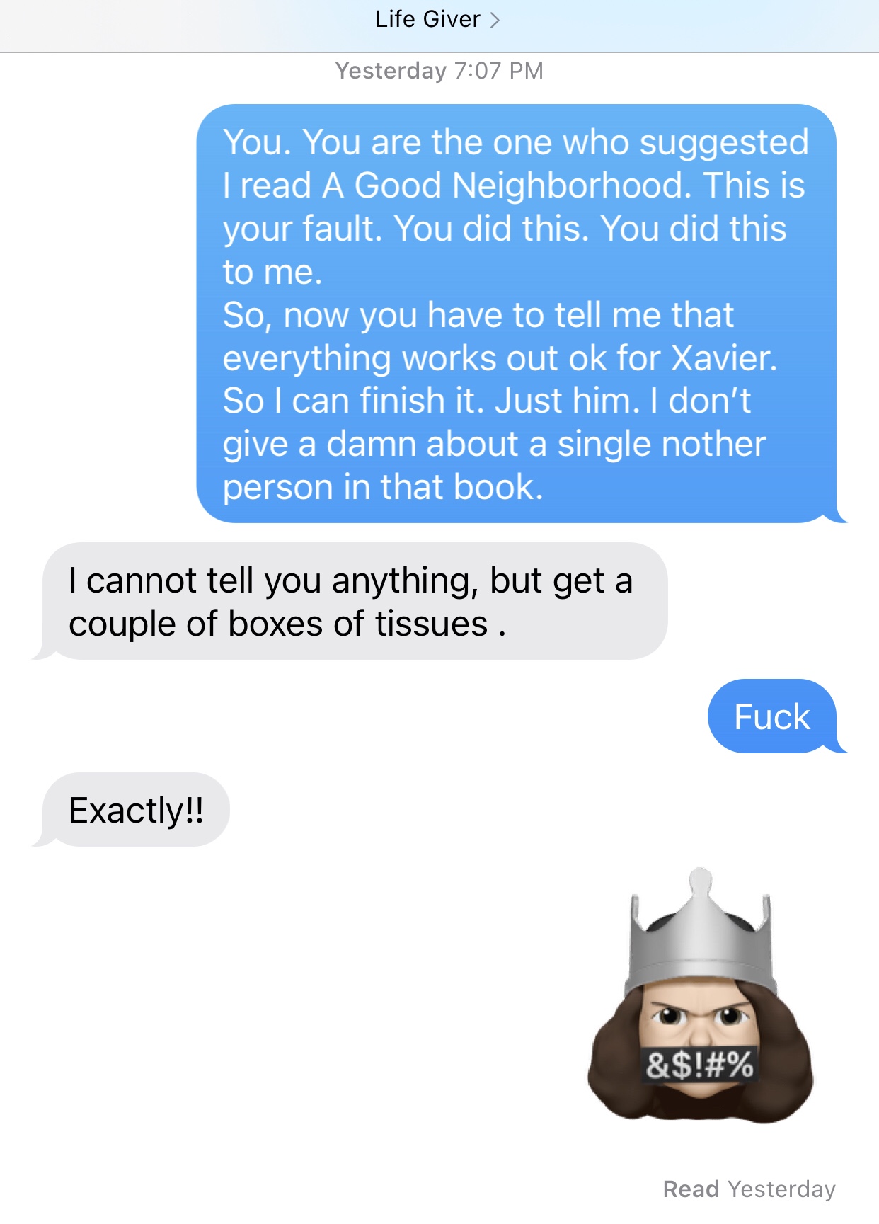 Look. Y’all gonna have to start signing waivers before recommending books to me.