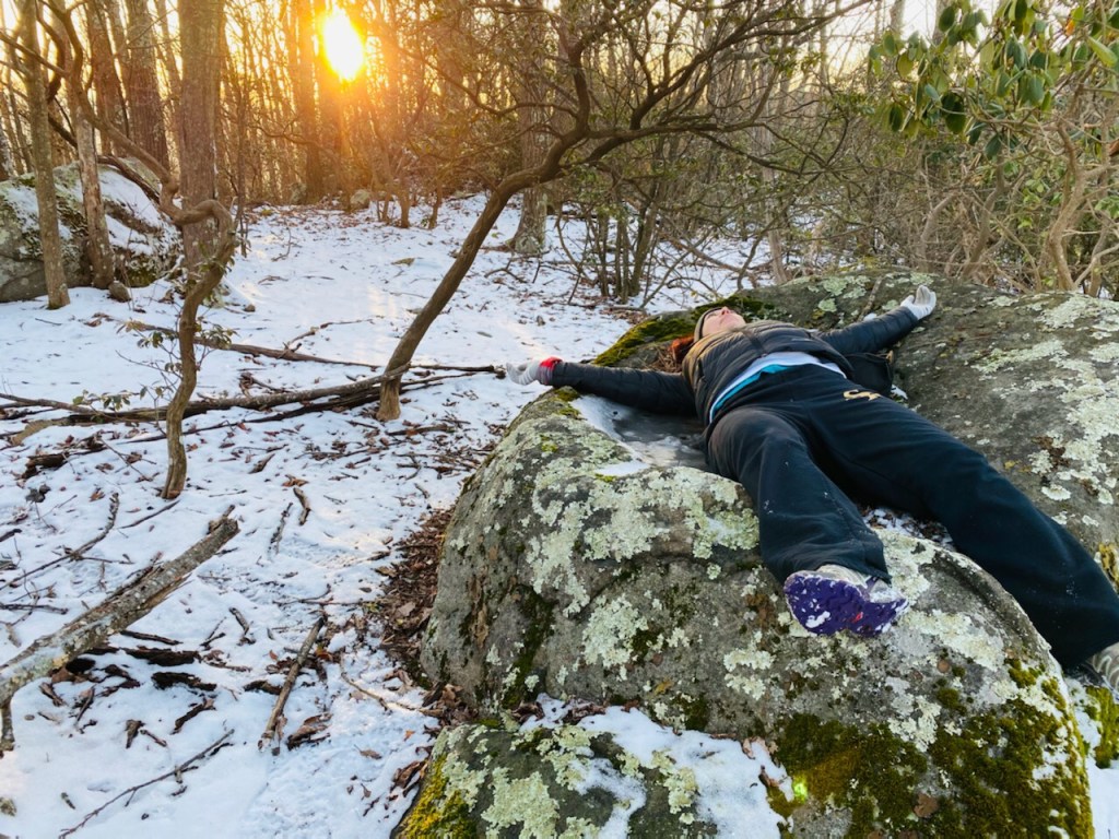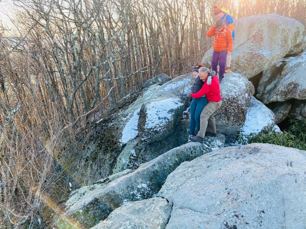 And we all put on our extra layers and everything. Before climbing on top of the rock.