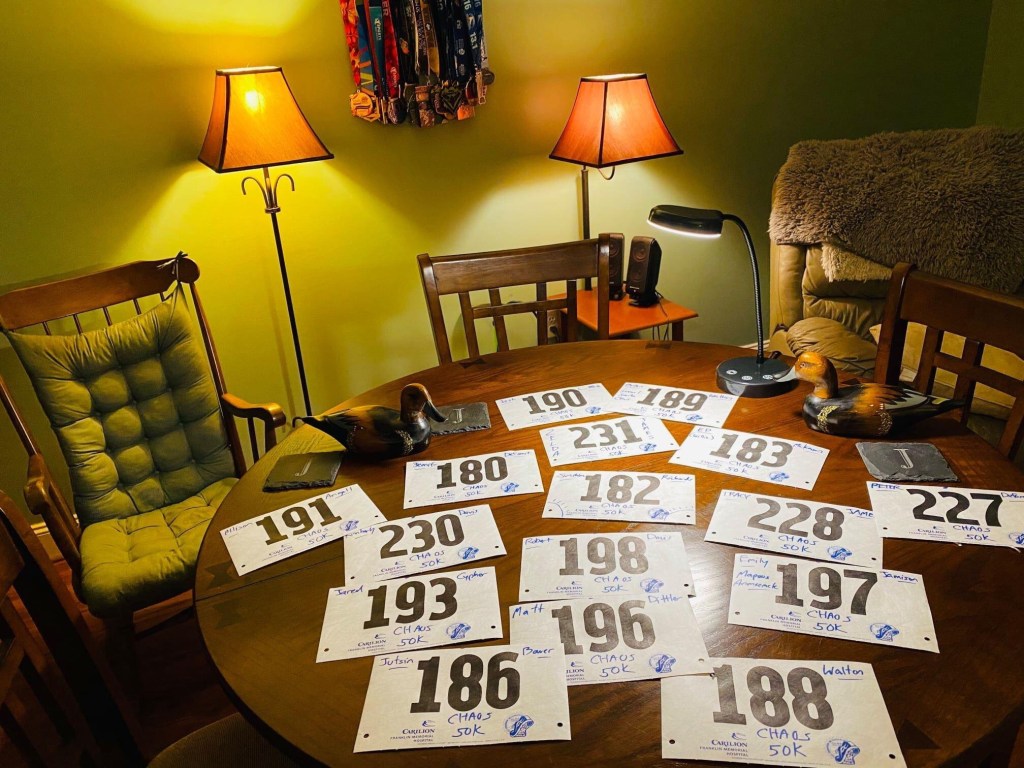 GJB spent minutes upon minutes created loosely, though somewhat inadequately personalized race bibs for the 50kers.