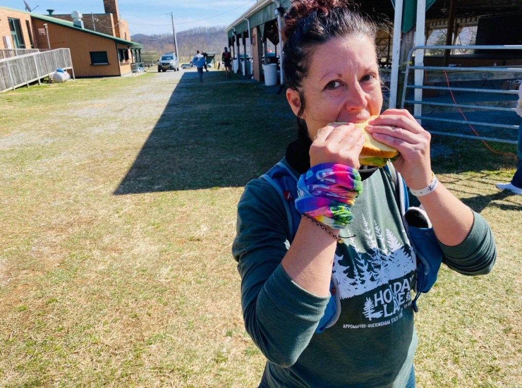 So I was still feeling pretty content when I rolled into the Blue Ridge Trail Runners aid station. That was covered with bacon and pierogis and grilled cheese.