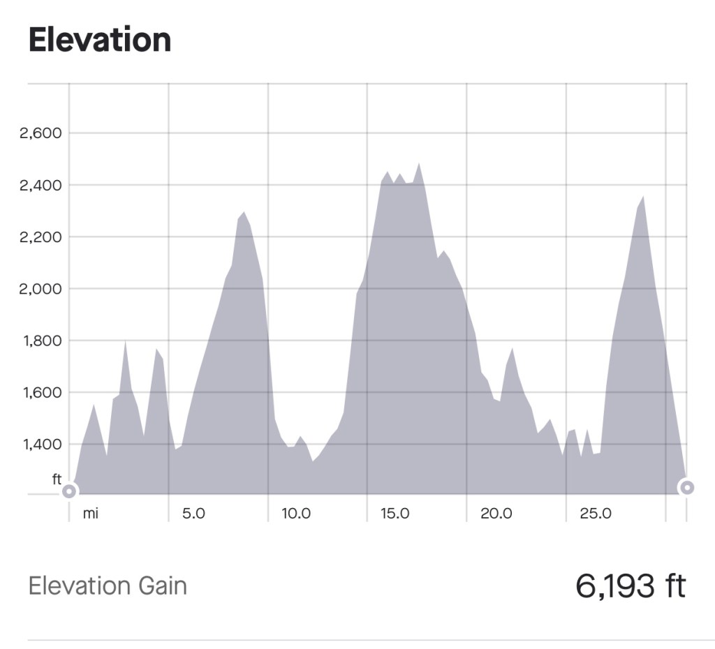Then the next climb. Which I thought was only five miles. Because when I studied the elevation profile. I was distracted by the aid stations. And I saw 16.4. And my brain completely erased the section after it that didn’t have a number at the top.