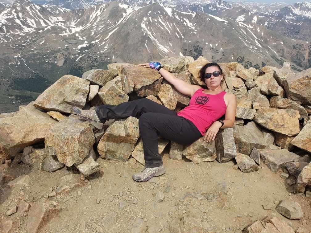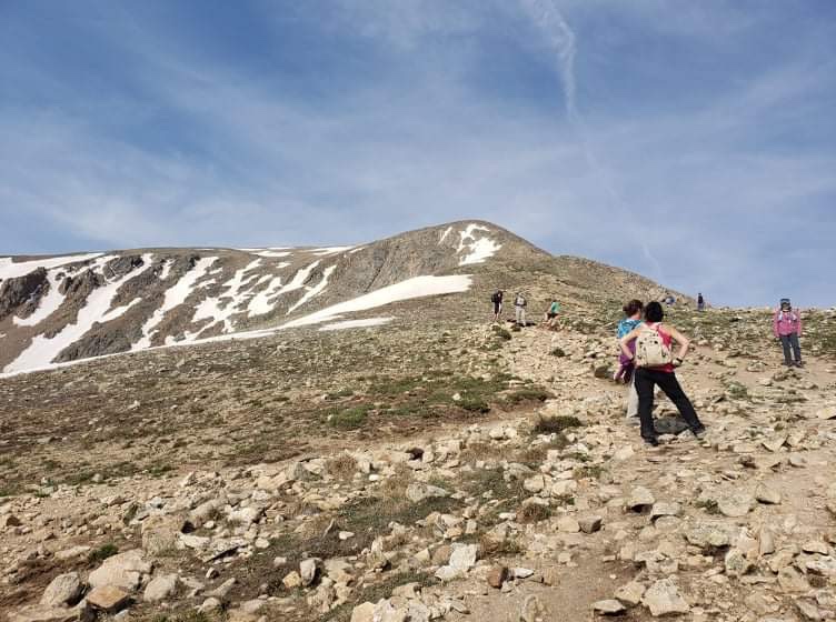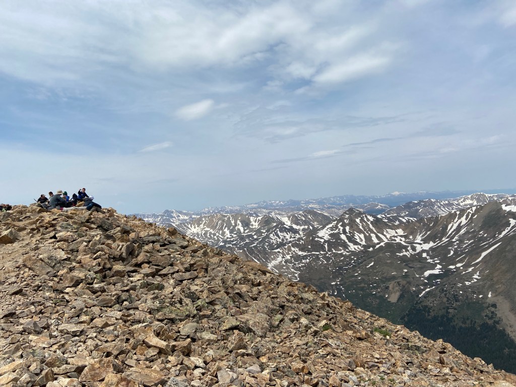 And as we’re slowly. So slowly. Bitchily. Picking our way back down. Here comes an entire family. Of six and seven year olds. Led by a five year old girl. Happily eating her snack. As she’s blithely skipping her way up Colorado’s highest mountain…