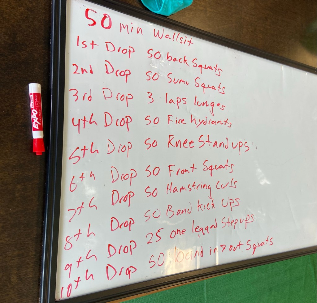 And I absolutely could have held that wall sit. With that dumbass 75 pound sand bag. Long enough to avoid the knee ups altogether. Which he’d changed back to 50.
