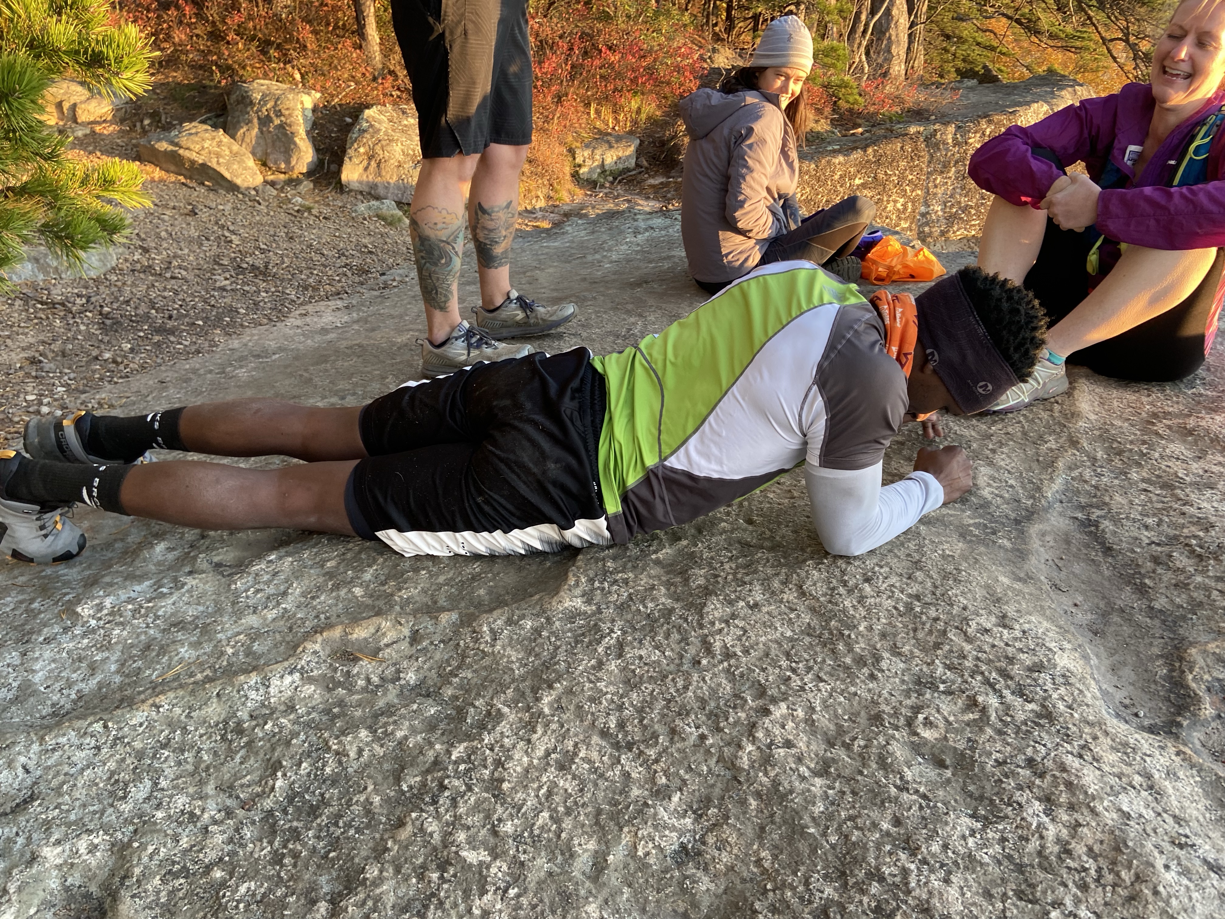 Also, no. Obviously they didn’t try to help. They just stood there watching. Waiting for me to get back up. So we could get on down the mountain. Before sunset.