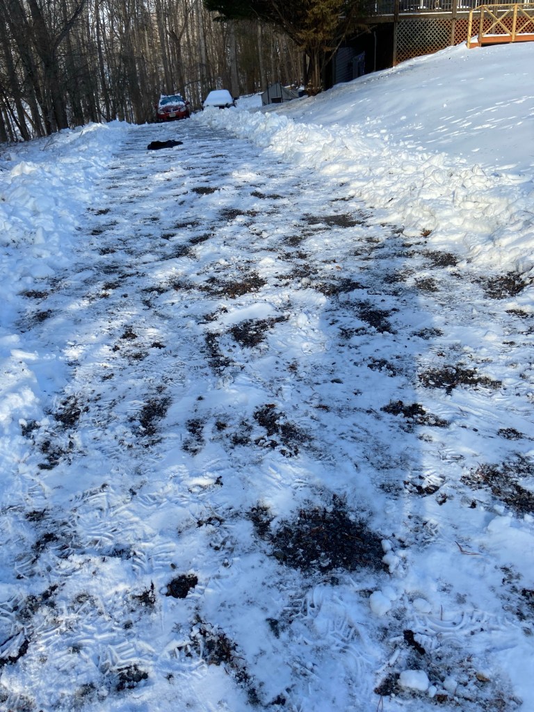 The driveway that led me, in previous years, to consider buying a narrower car. Like maybe a scooter or something. And to search “how to move a house to front of yard.”