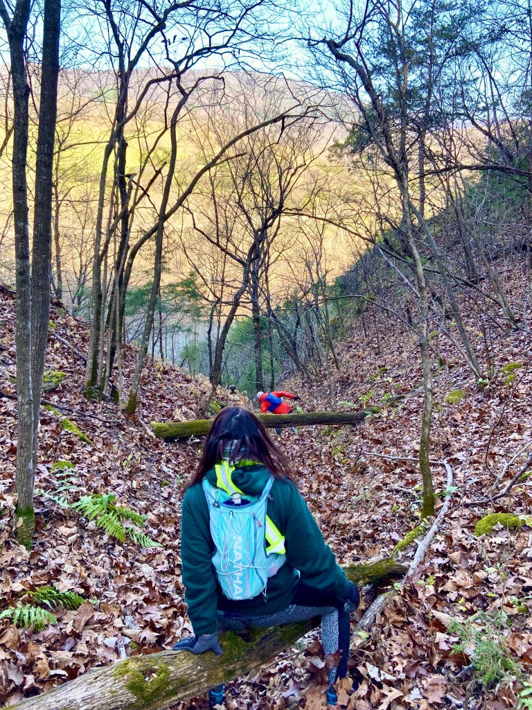 And since it had already taken us a good hour. To go 1.29 miles. I didn’t want to take another 30 minutes to butt scooch back across the log. So I just walked through the 10 degree creek water.
