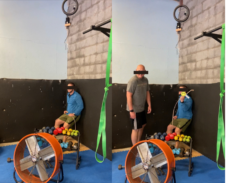 So what’s happening here…is Captain Obvious was having a hot flash. Or something. And started whining about needing a fan. One specific fan. There are two other fans in the gym. But he needed this one specific fan that has to be plugged into the outlet…wayyyyyy up yonder.