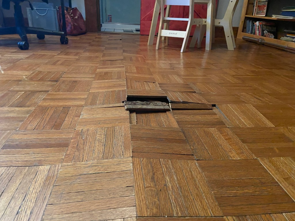 The kitchen floor is doing something similar. Except it has an unknown substance coming up with it. I think it’s pee. Probably not human pee. Hopefully. Not. Human. Pee.