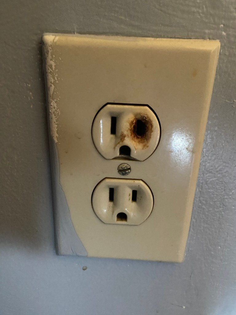 I refuse to replace that outlet cover. Until I get that looked at. Because I will absolutely forget not to try to use that outlet again if I don’t see burn marks on it.